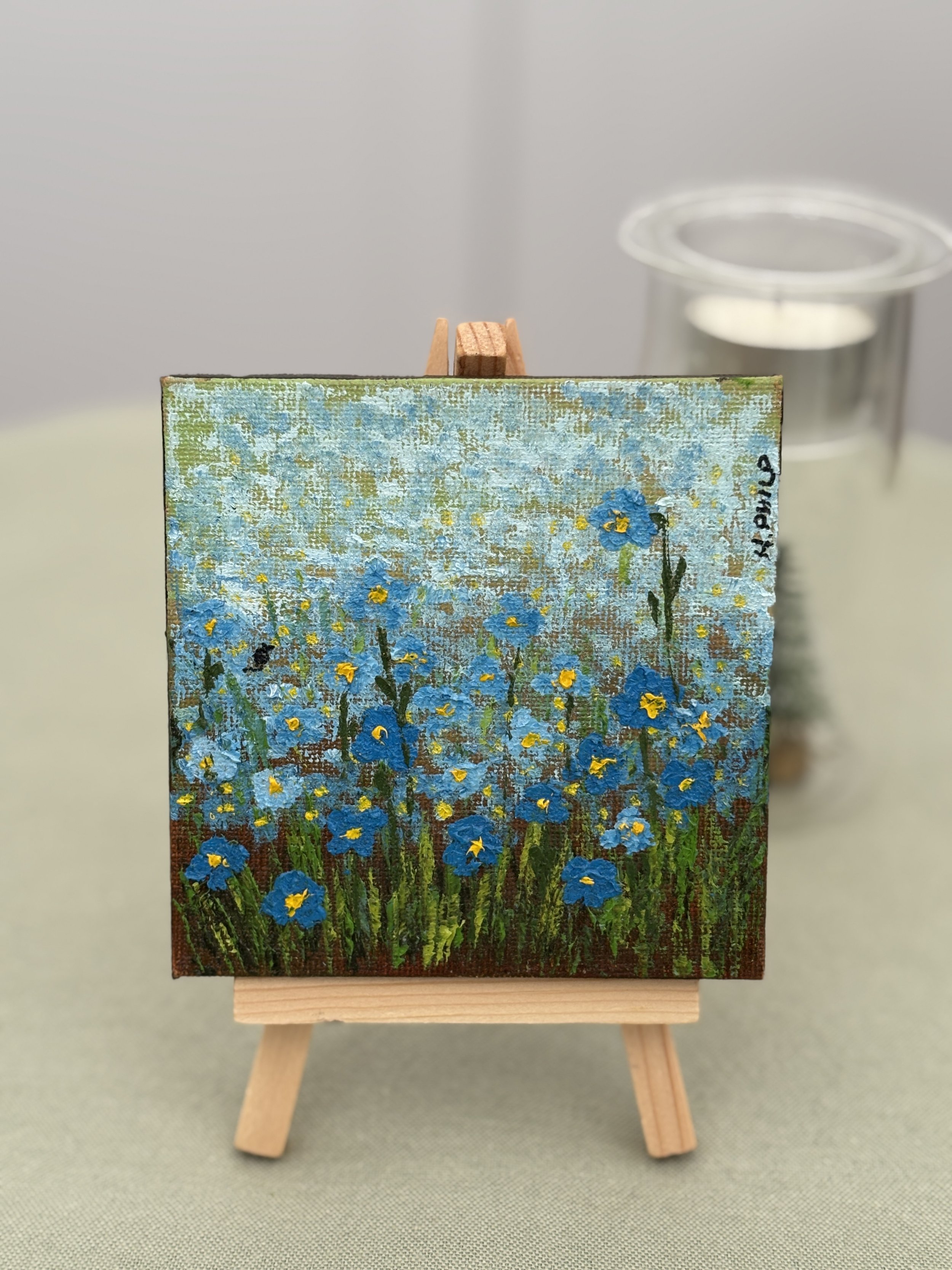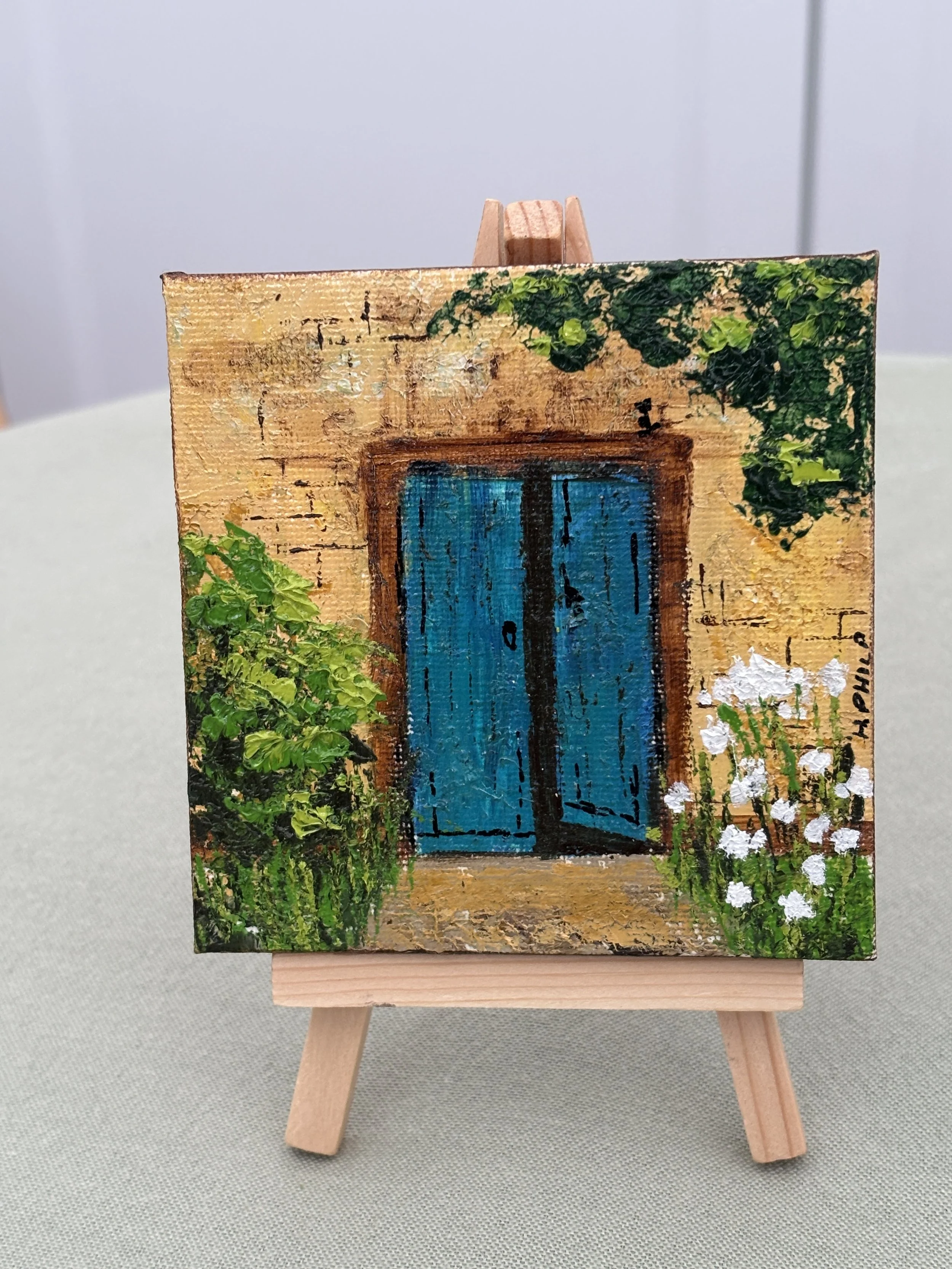 17cm square oil paintings in box frames, with 3D props to bring the scene to life. Inspired by my days in musical theatre and stage props that brought our stories to life.