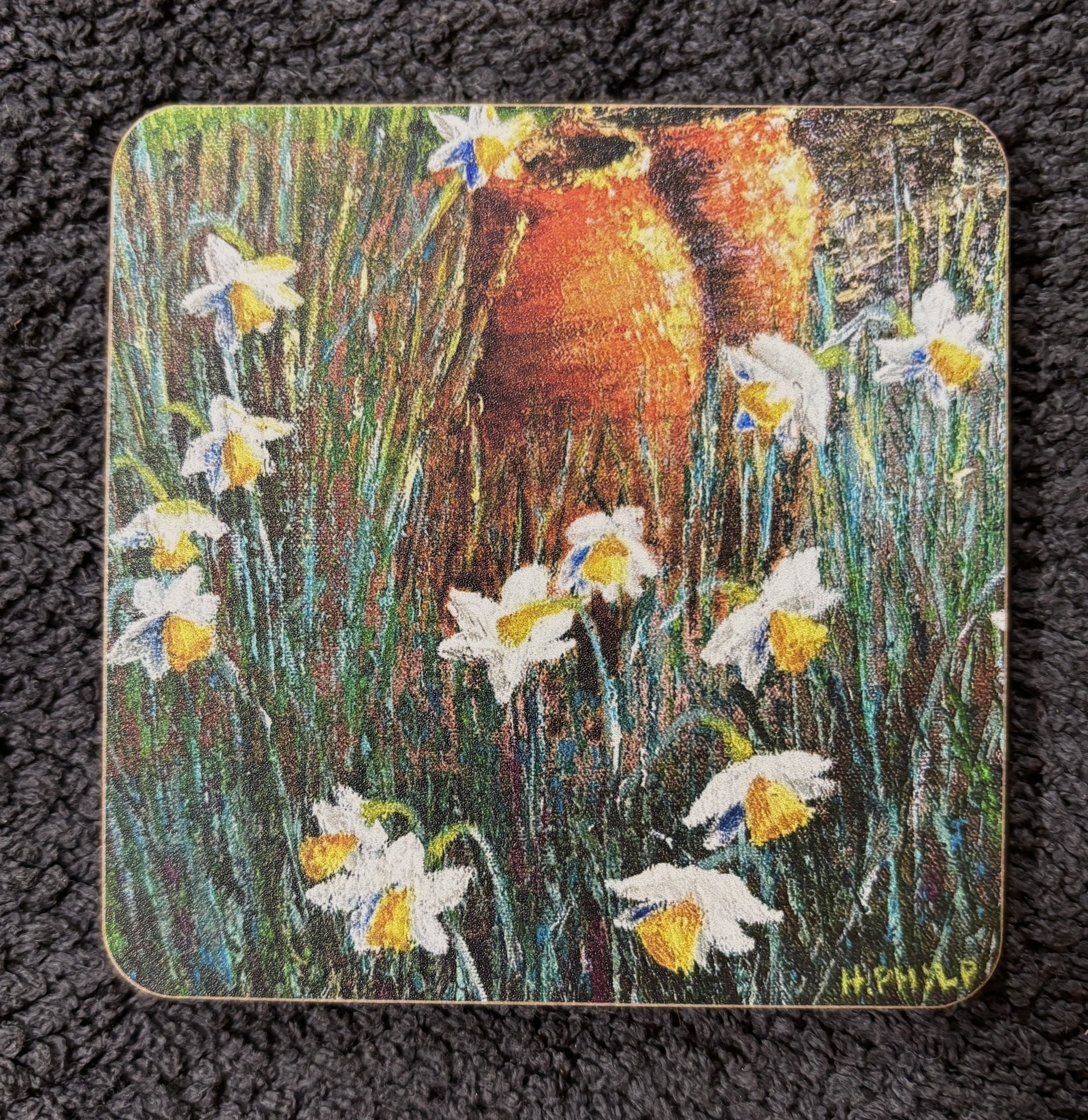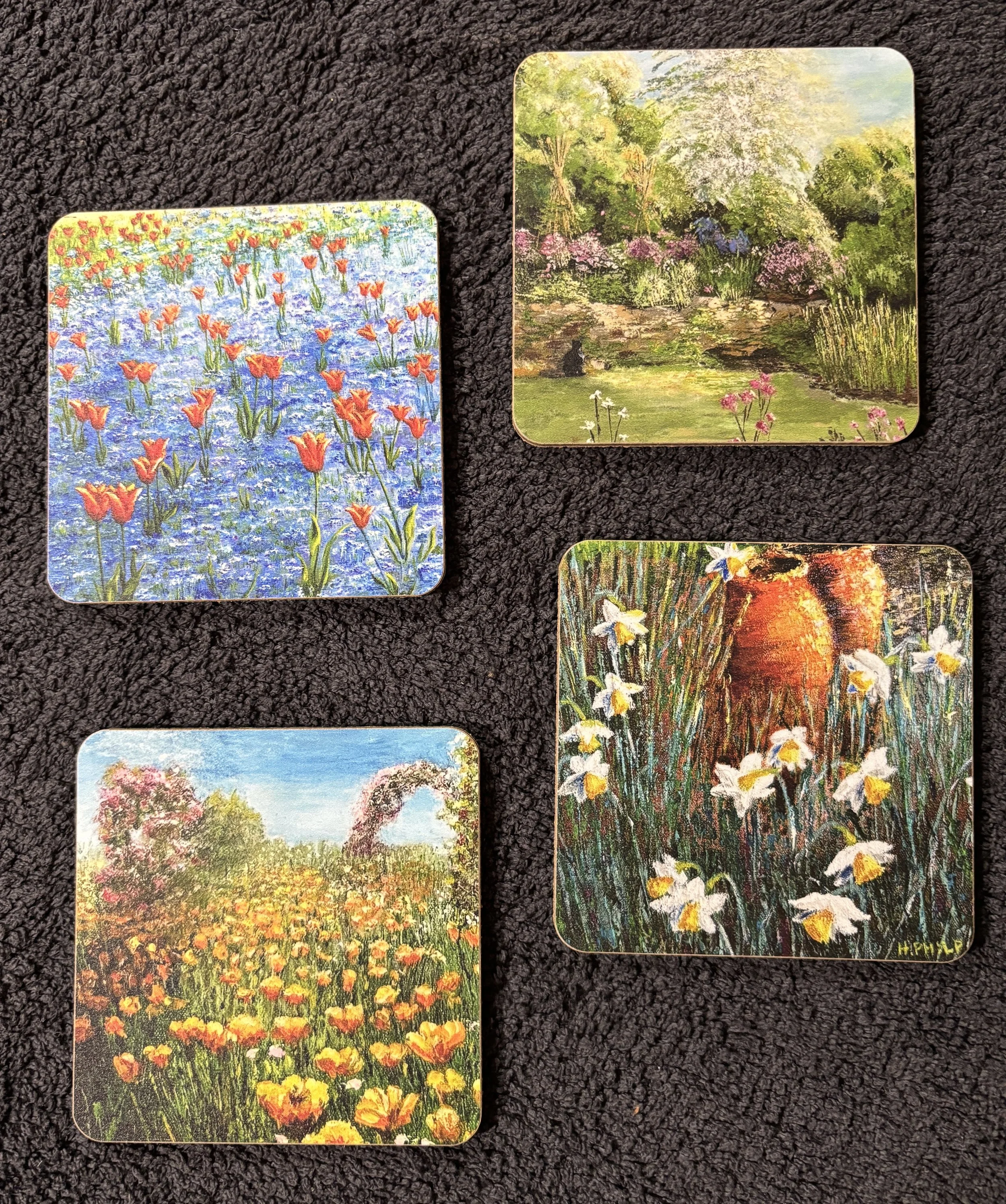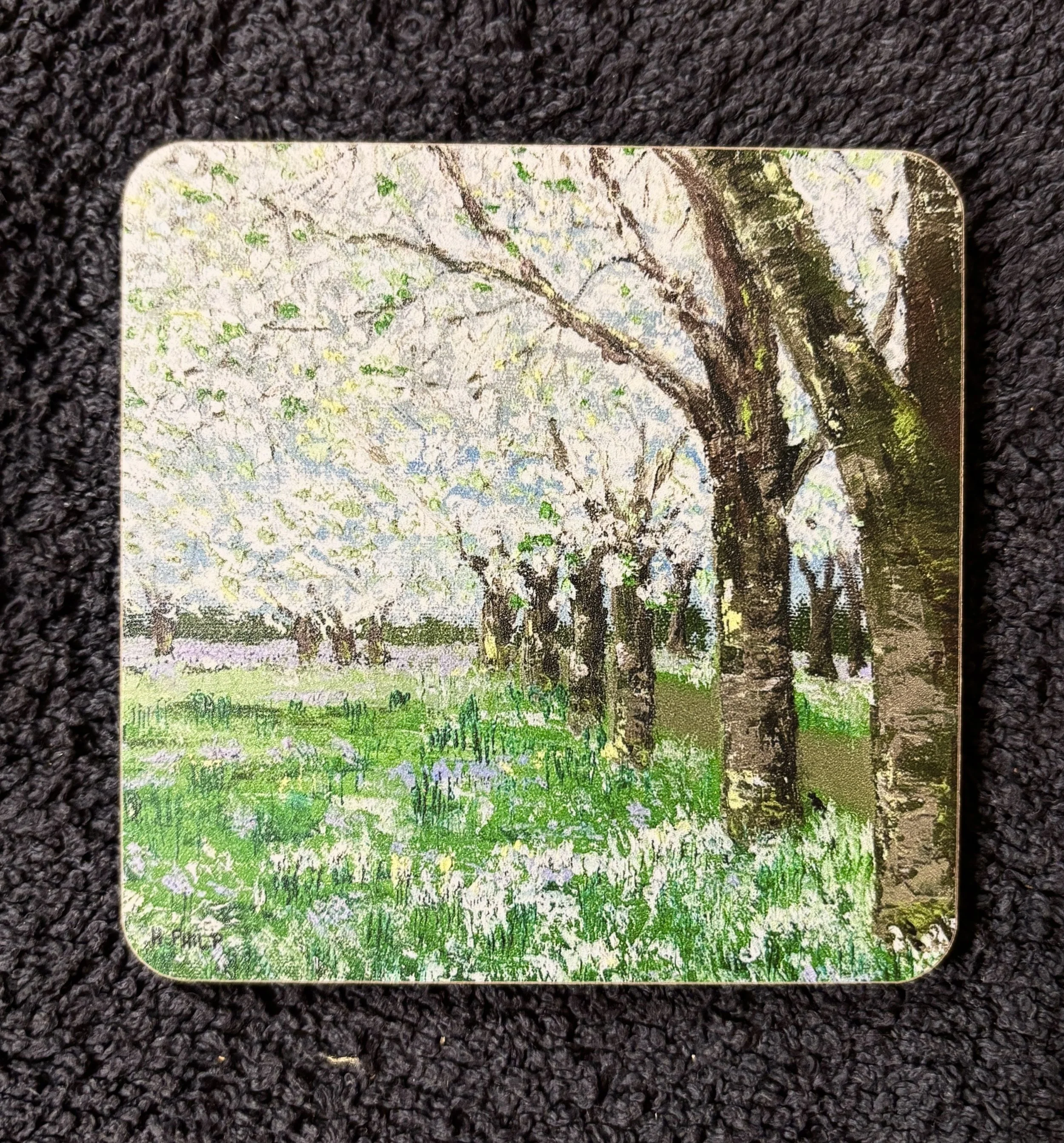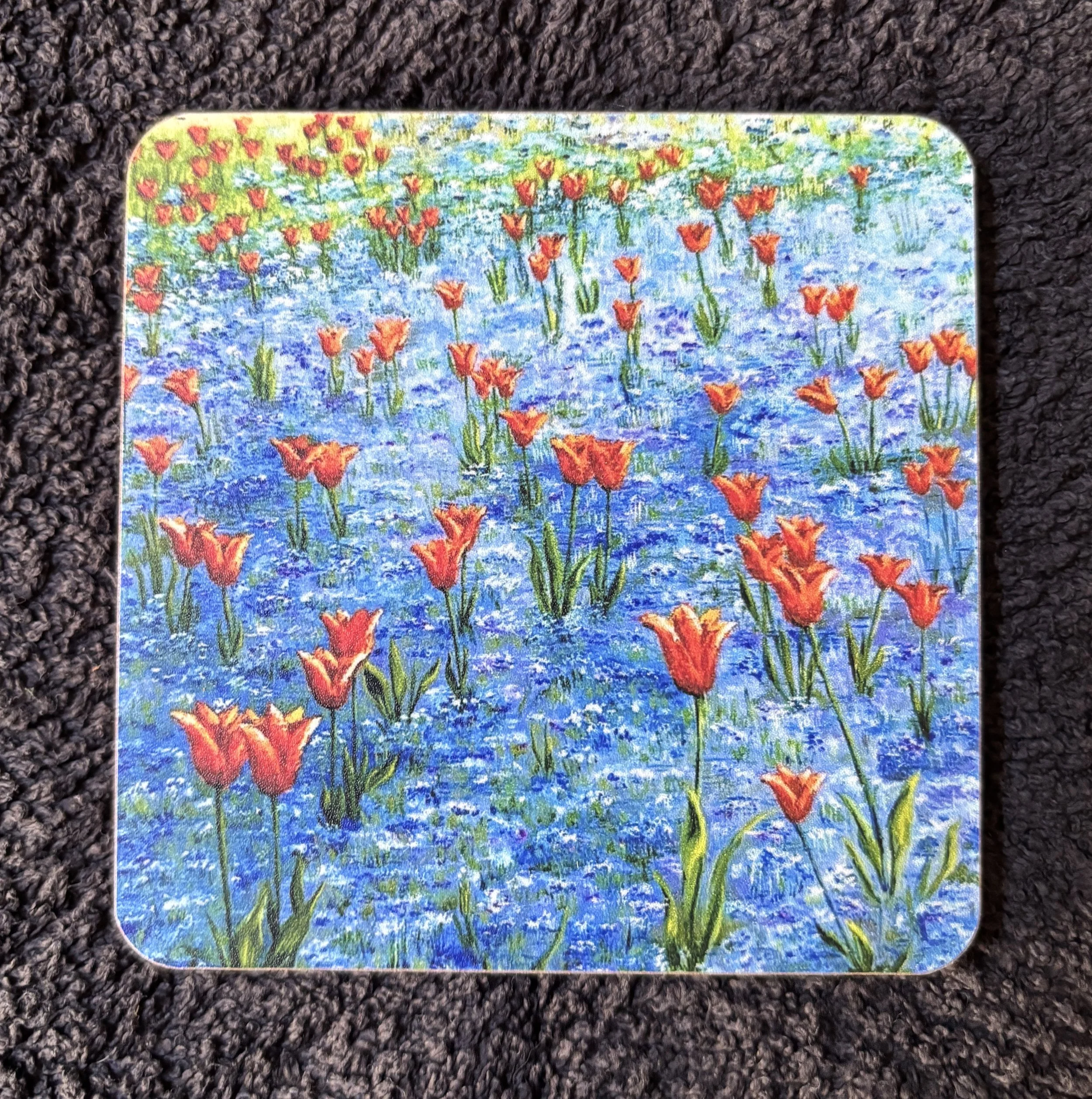 Single set of placemat and coaster, printed with the image of the original oil painting “Forget-Me-Not”.