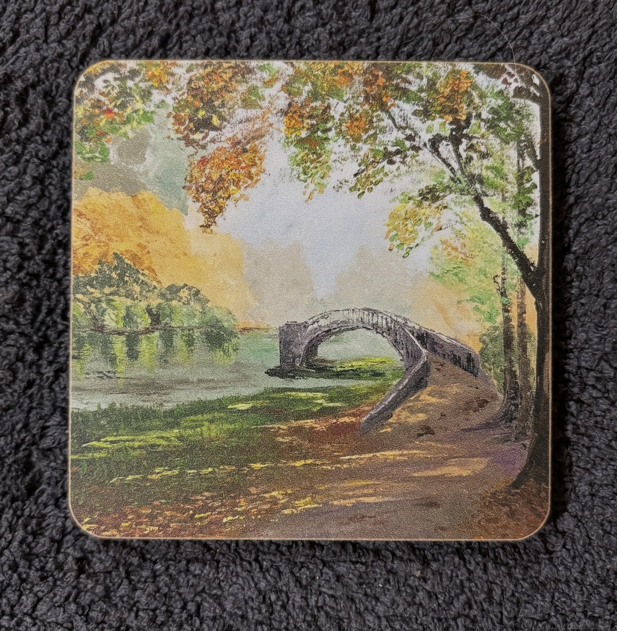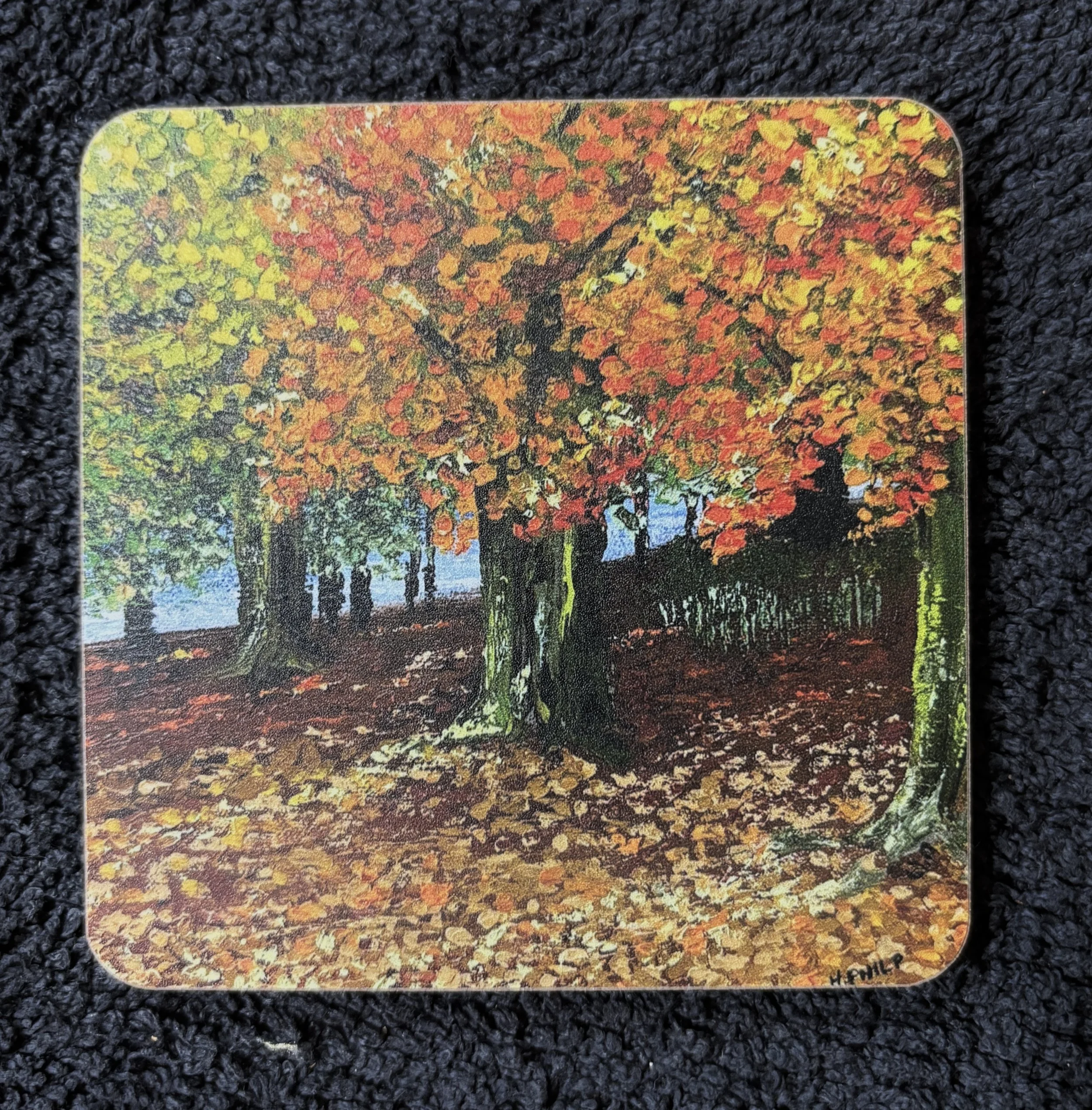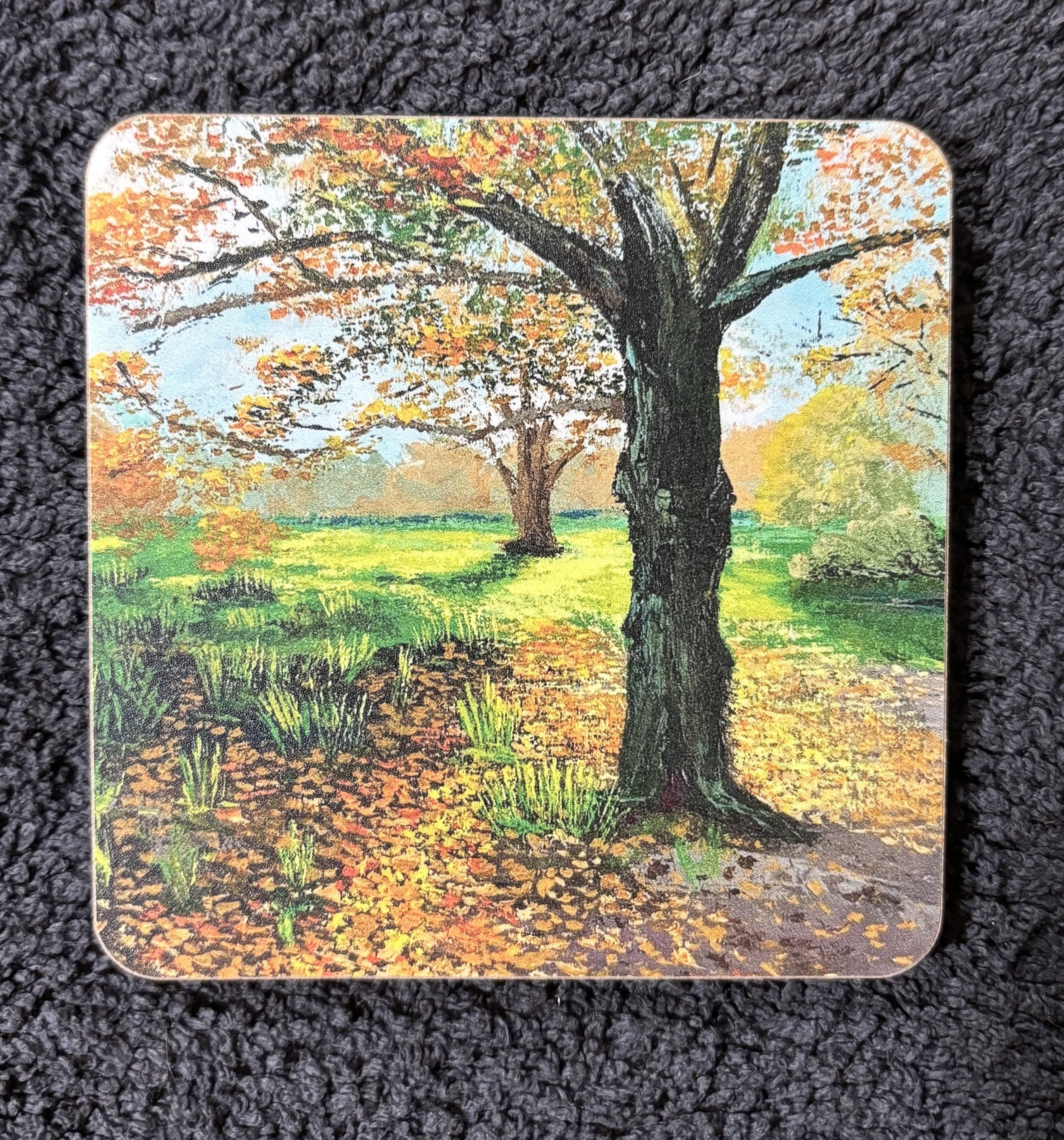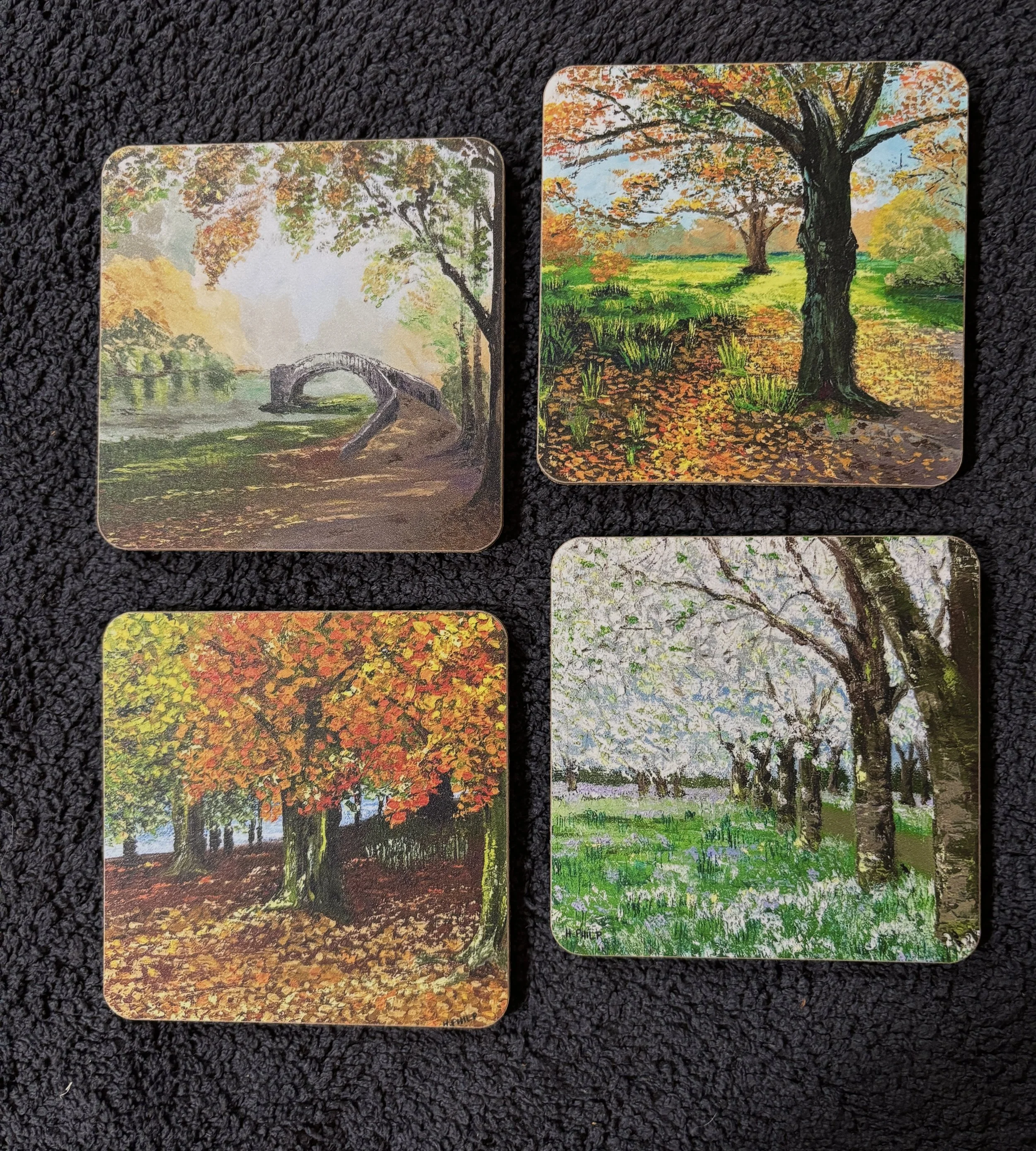 Single set of placemat and coaster, printed with the image of the original oil painting “Forget-Me-Not”.